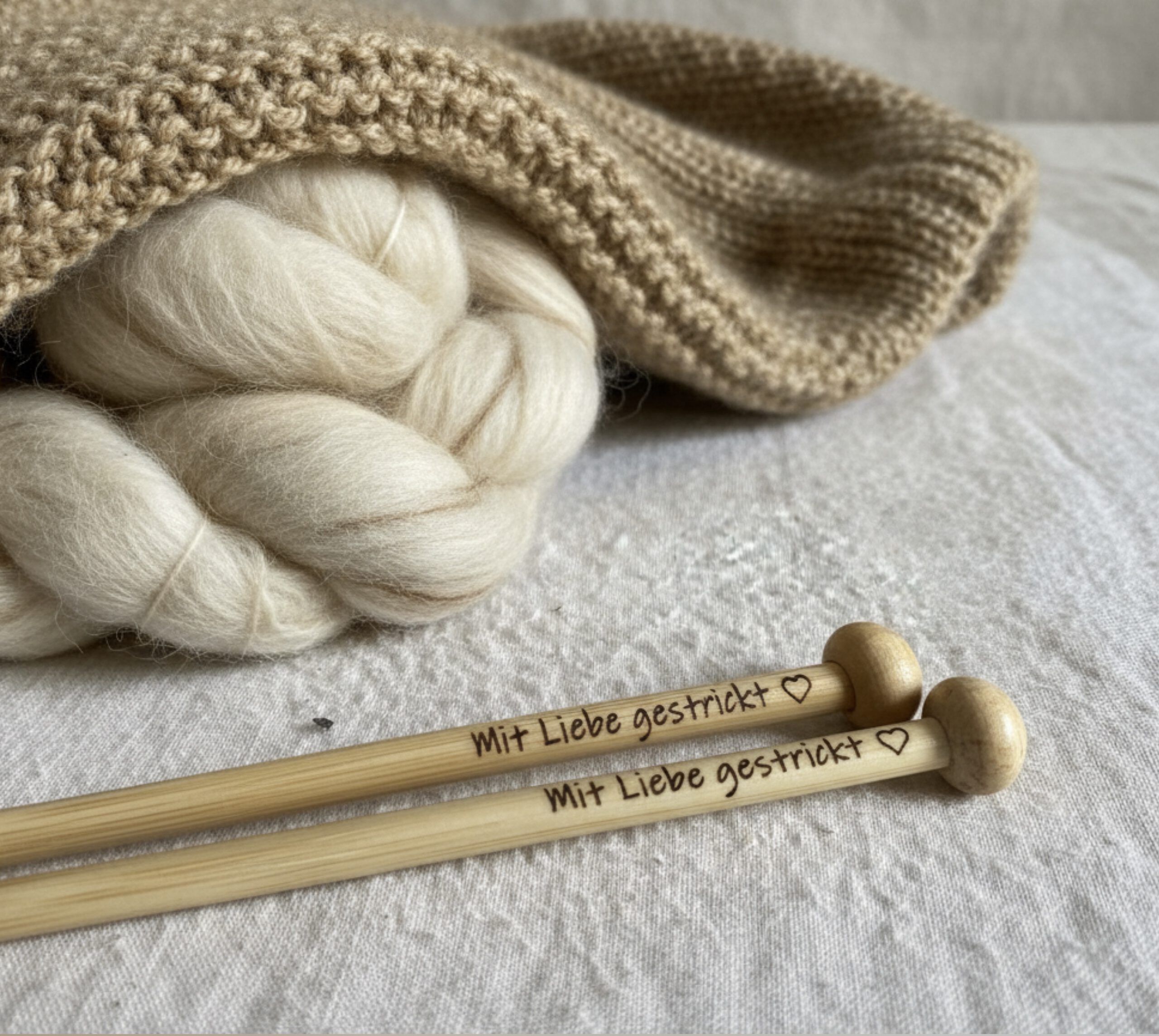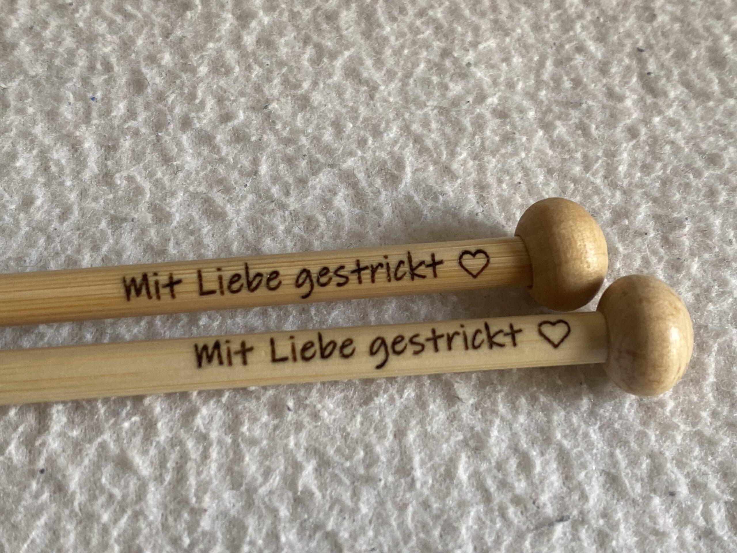 1 Set beinhaltet 2 Stricknadeln jeweils mit Ihrer gewünschten Personalisierung (je Stricknadel max. 25 Zeichen inkl. Leerzeichen)